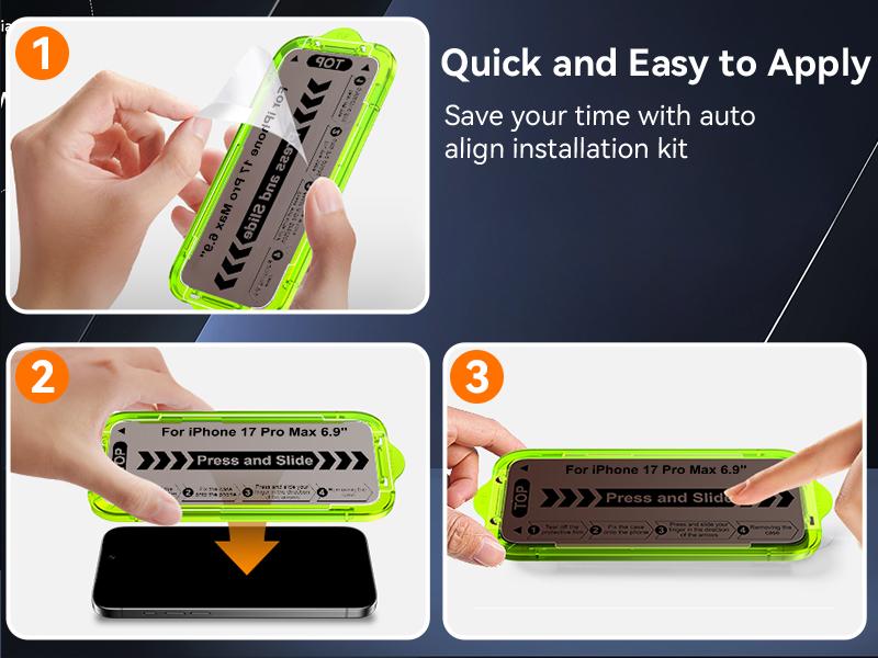 [Enjoy Effortless Installation] Install in just 1 second with the auto-alignment frame and auto-adhesion—no bubbles, no mess, no stress.
